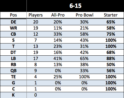 – Notice that the odds of getting an All-Pro caliber player fall significantly after the top 15.
