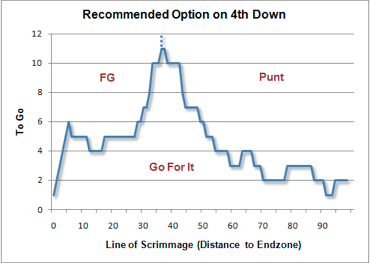 To start things off, I wondered if anyone had already done research into optimal fourth down strategy. I know lots of smart football fans out there have already spent time on it, so I figured it would already be established in the literature (and would save me the time of having to establish it).