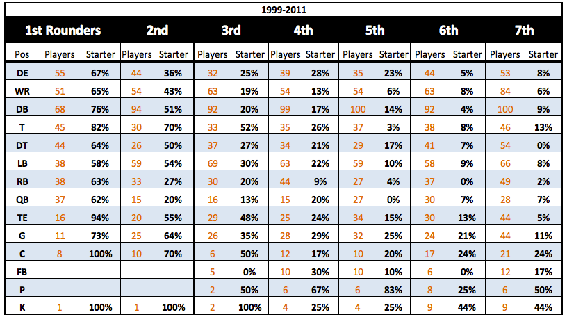 1) Draft prospects are not guarantees! Remember the post I did on Hacking the Draft? Let’s take another look at the chart from that study.