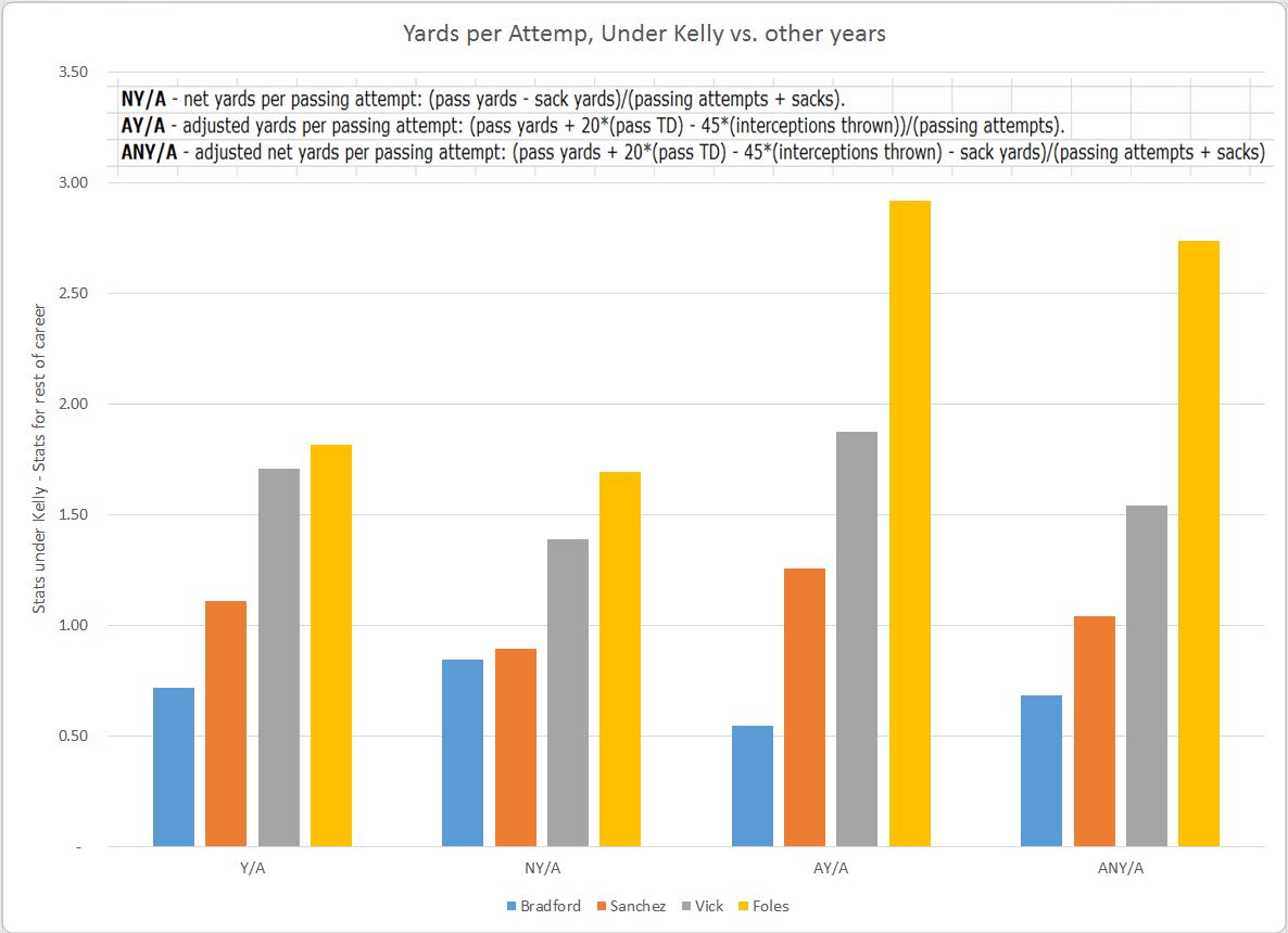 Which makes it hard to determine just how much of Bradford’s improvement was a result of Sam Bradford, compared to how much of it was attributable to playing in Kelly’s system.