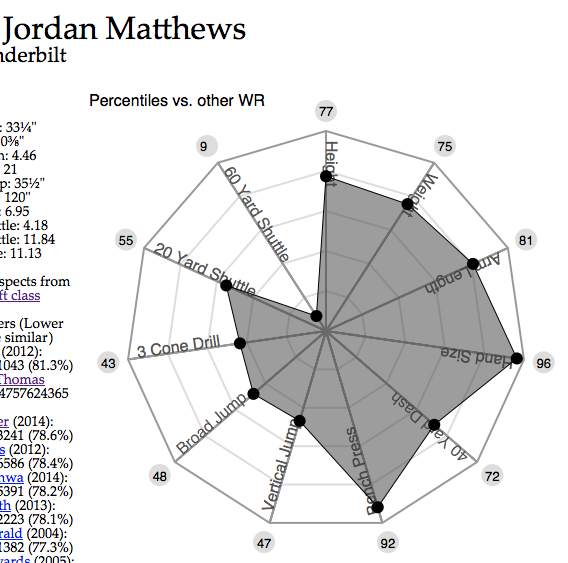 Matthews has a 62% catch percentage, which is comparable to Julio Jones (65%), Odell Beckham (64%), Randall Cobb (64%), Jarvis Landry (64%), Demaryius Thomas (62%) and Calvin Johnson (63%).