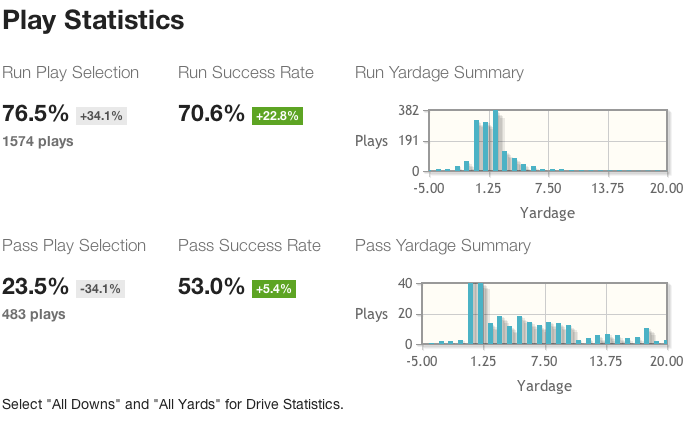 On the other side of the ball, the Eagles defense has come up with 9 sacks, led by Barwin and Cox, who each have 2. The “on-pace” number is now 48 sacks, which would be a VERY good result. Last season the Eagles had just 30 sacks, and the long term NFL average is roughly 35. Here’s the good news: I don’t see much reason to distrust this number.