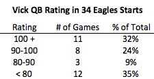 Before the season, I put a 9 win projection on the Eagles team. I then went through the schedule and explained how, from my point of view, the Eagles had to perform across each stretch in order to actually achieve those 9 wins. Well it’s now week 4, and the first benchmark I set was after the first 3 games.